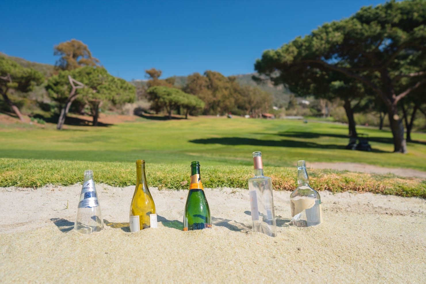 Are you finished with your glass bottle? We’ll take care of it. And by that, we mean we’ll take it to our on-site glass bottle crusher and turn it into sand. Then, we’ll take that sand and use it to fill bunkers on the golf course, repair our pavement and filter the pool. It’s a win for us and a win for the planet!