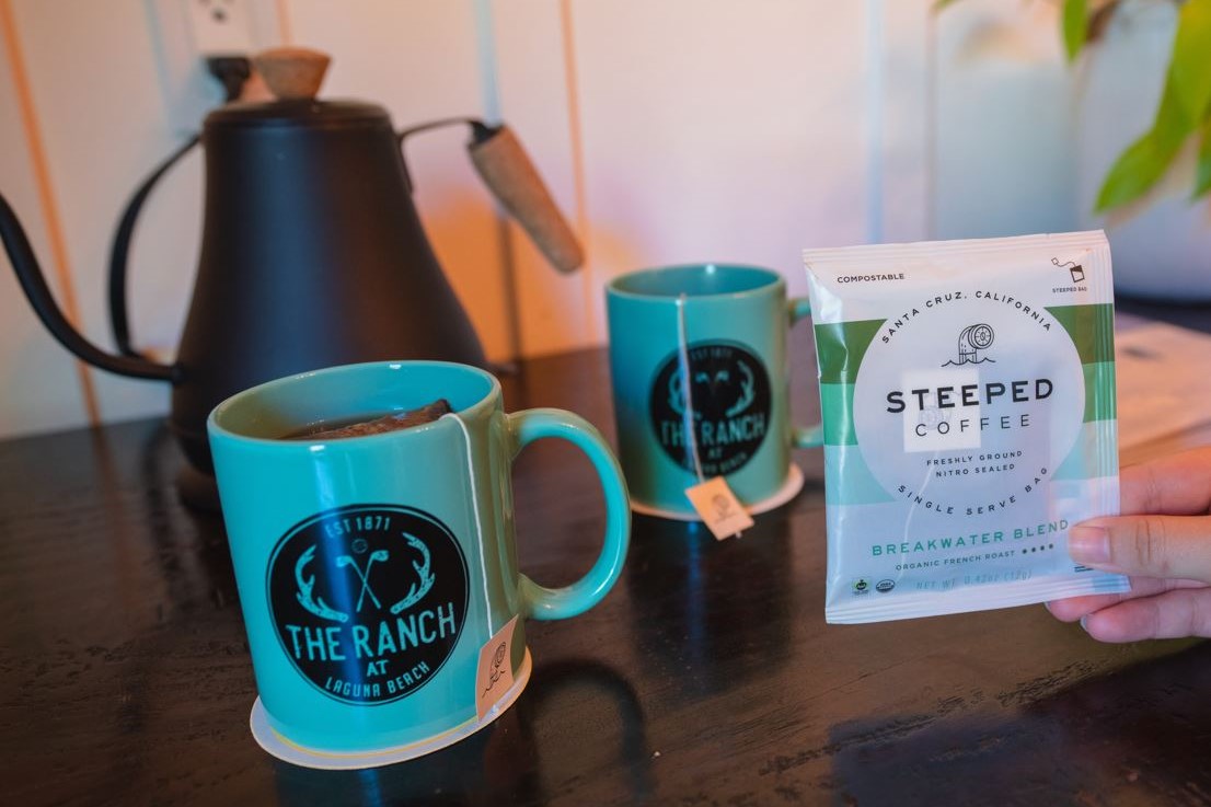 Our in-room coffee program provides a cup of exceptional, fair-trade coffee for guests in 100% compostable packaging (which goes straight to our farm!). We offer steeped coffee; it’s the best way to start your day and do your part to help the environment and support the Laguna Beach Community.